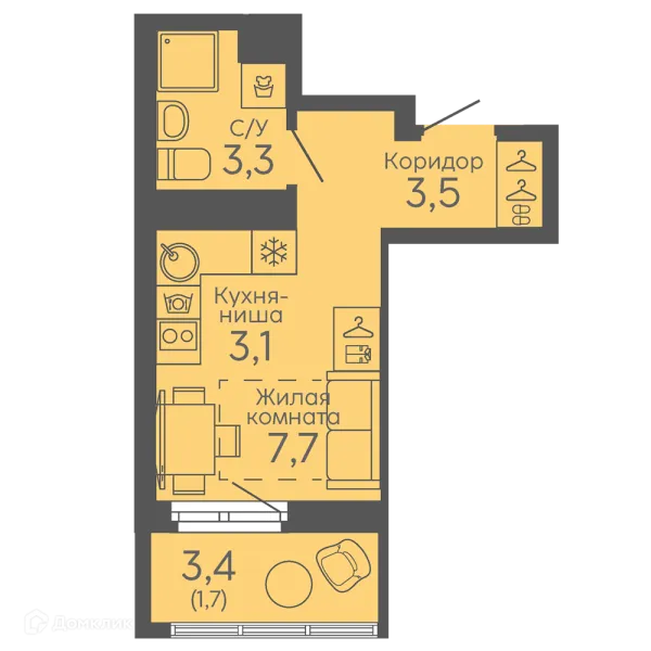 Студия квартира в Екатеринбурге в ипотеку от 24 072 руб/месяц