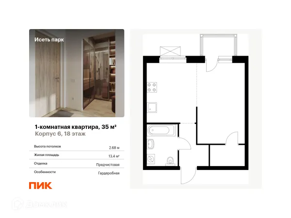 1 комн. квартира в Екатеринбурге в ипотеку от 51 213 руб/месяц