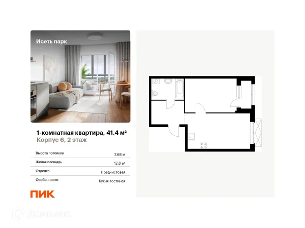 1 комн. квартира в Екатеринбурге в ипотеку от 41 054 руб/месяц