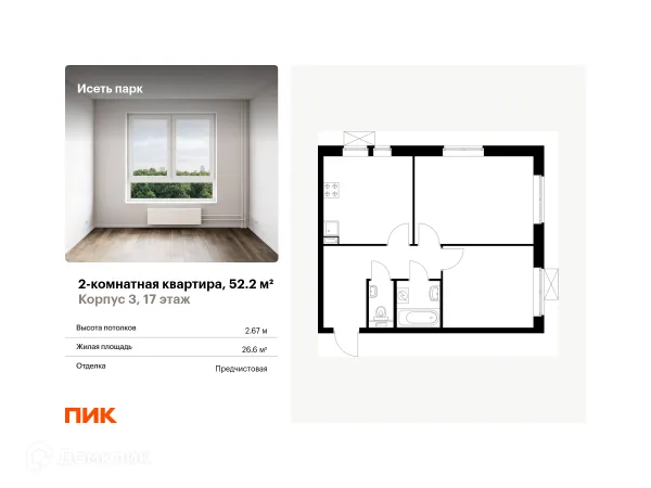 2 комн. квартира в Екатеринбурге в ипотеку от 61 344 руб/месяц
