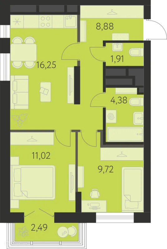 2 комн. квартира в Екатеринбурге в ипотеку от 58 436 руб/месяц