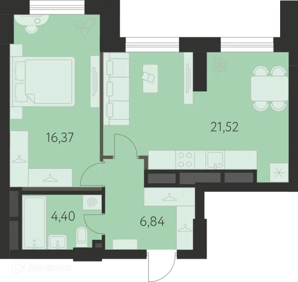 1 комн. квартира в Екатеринбурге в ипотеку от 27 904 руб/месяц