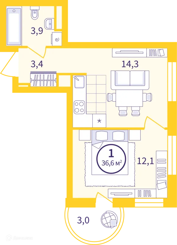 1 комн. квартира в Екатеринбурге в ипотеку от 43 134 руб/месяц