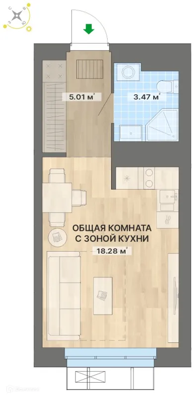 18.28 м²